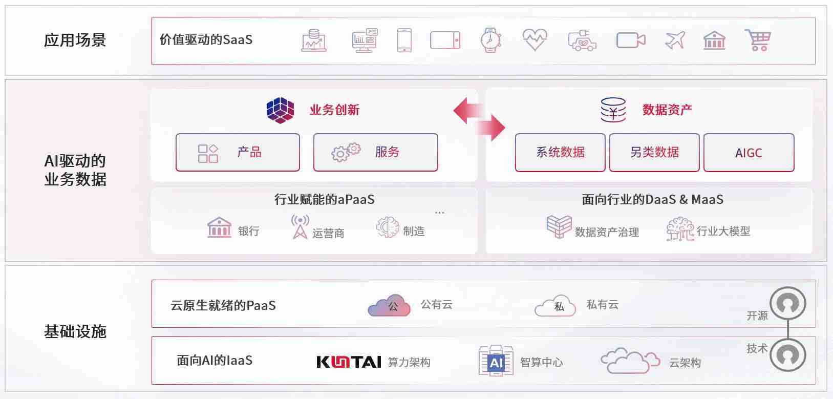 数字时代,,围绕企业数字化转型的关键要素,,,PA旗舰厅数码开创性的提出数云融合战略和技术体系框架,,着力在云原生、、数字原生、、、AI原生和信创产业上架构产品和服务能力,,,,为处在不同数字化转型阶段的快消零售、、、、汽车、、金融、、、、医疗、、、政企、、、教育、、、、运营商等行业客户提供泛在的敏捷IT能力和融合的数据驱动能力,,构建跨界融合创新的数字业务场景和新业务模式,,,,助力企业级客户建立面向未来的核心能力和竞争优势,,,全面推动社会的数字化、、、智能化转型升级。。。